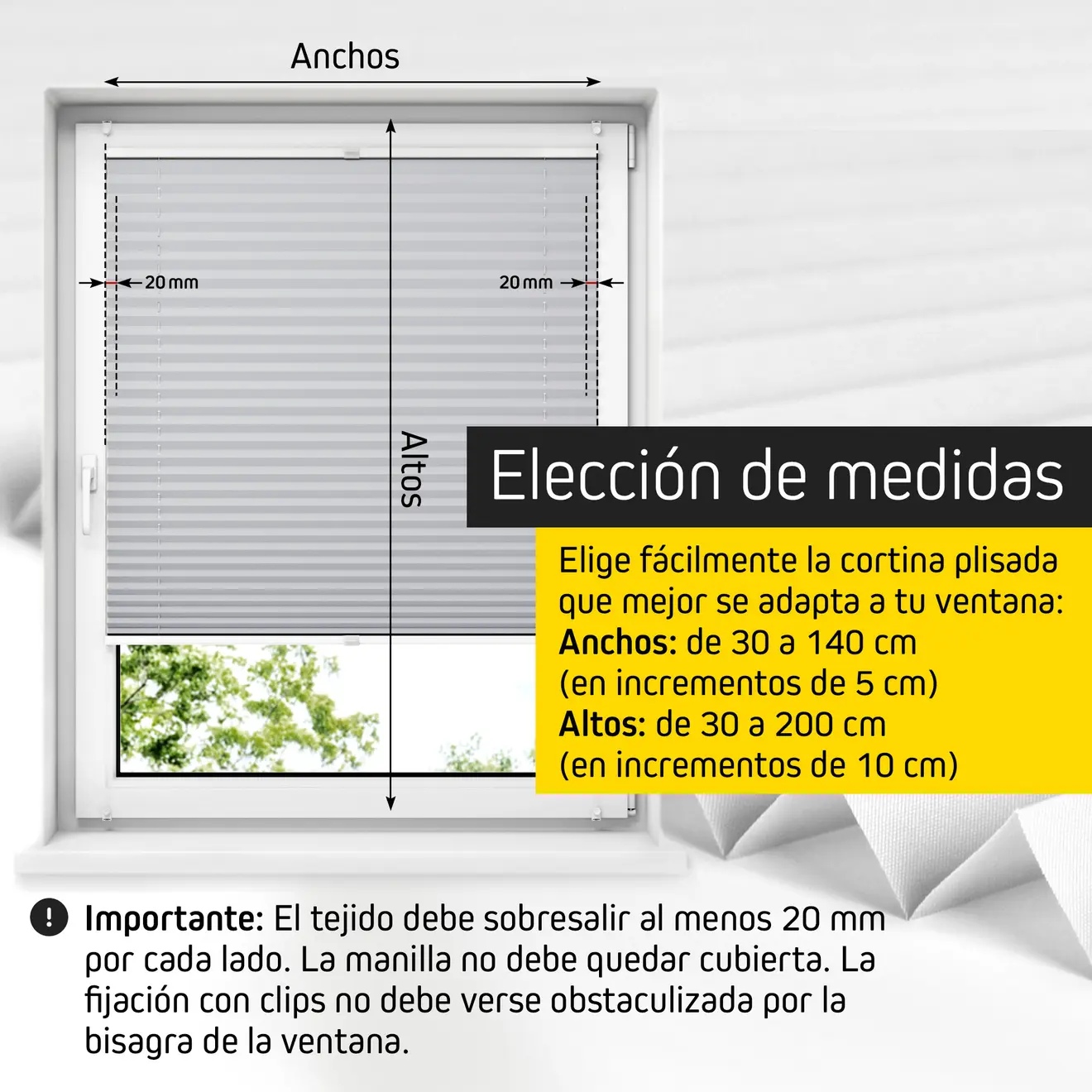 | Nombre del producto: | Cortina Plisada Pure | Premium, Poliestere 35 x 100 cm, blanco |
