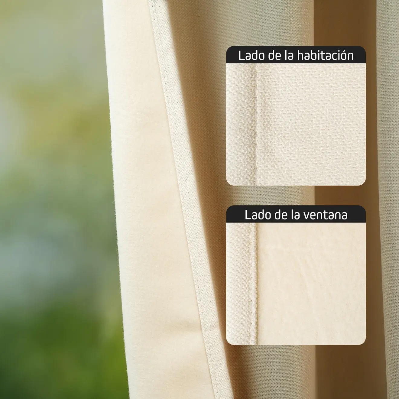 La cortina térmica tiene un dobladillo (1,5 cm), que no solo tiene una función estética, sino que también contribuye a que la cortina caiga bien.