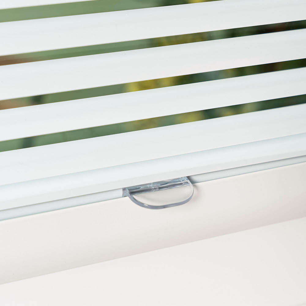 Con su protección integrada contra el balanceo, tu veneziana Perfect Fit se mantiene firme y estable incluso cuando la ventana está inclinada o abierta.