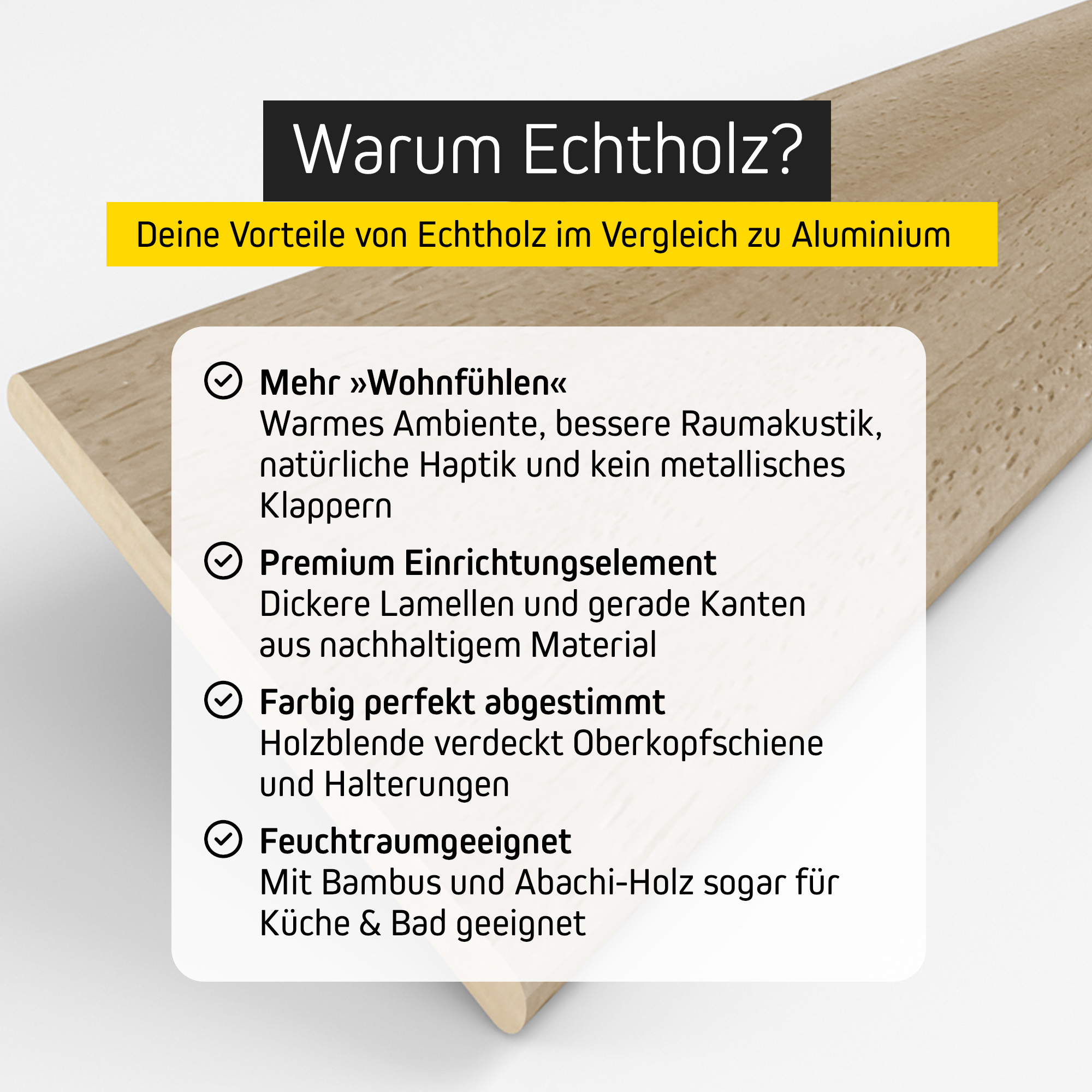 - Adecuada para espacios húmedos, con lamas de bambú