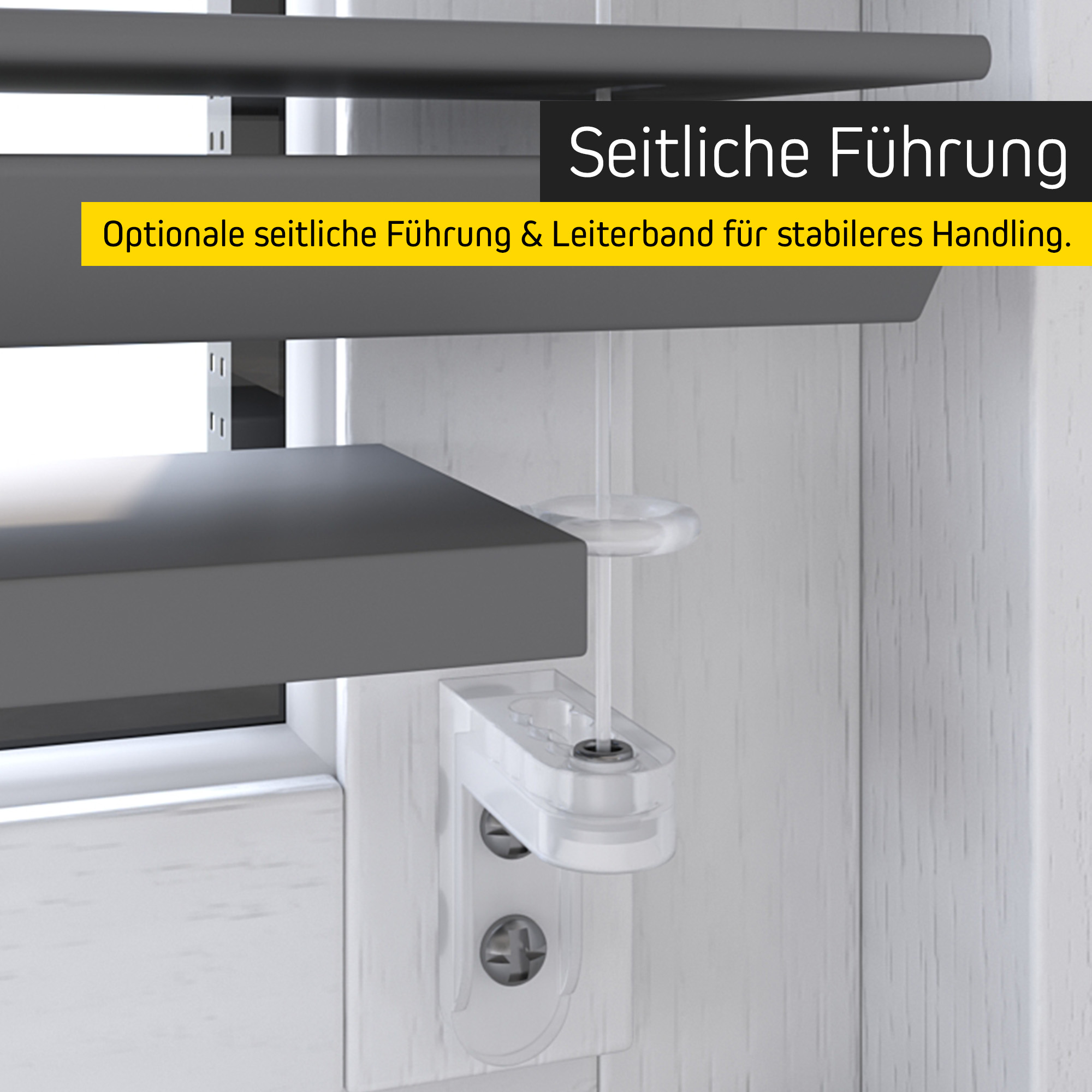 Ideal para ventanas abatibles u oscilobatientes, este sistema asegura la estabilidad de la persiana veneziana incluso en posición inclinada, protegiéndolo además de las corrientes de aire.