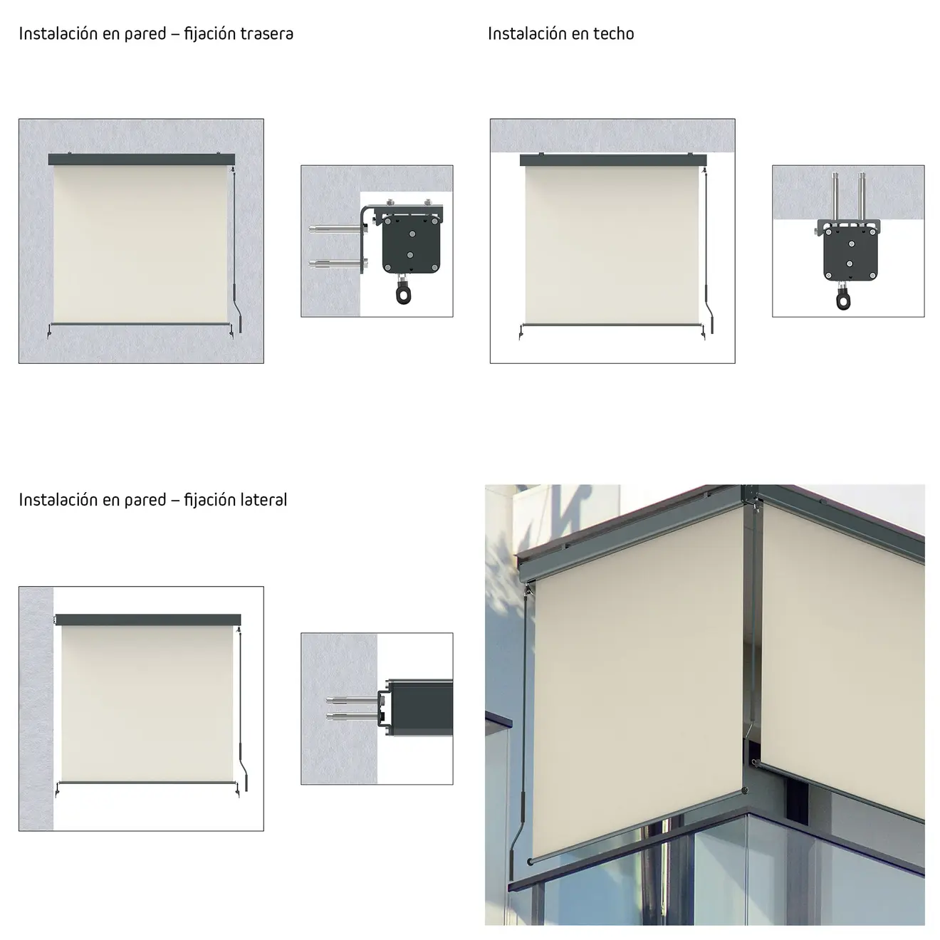 ¡Fija el toldo vertical con manivela mediante montaje en techo, pared o lateral! - ¡Elige tu modelo favorito!